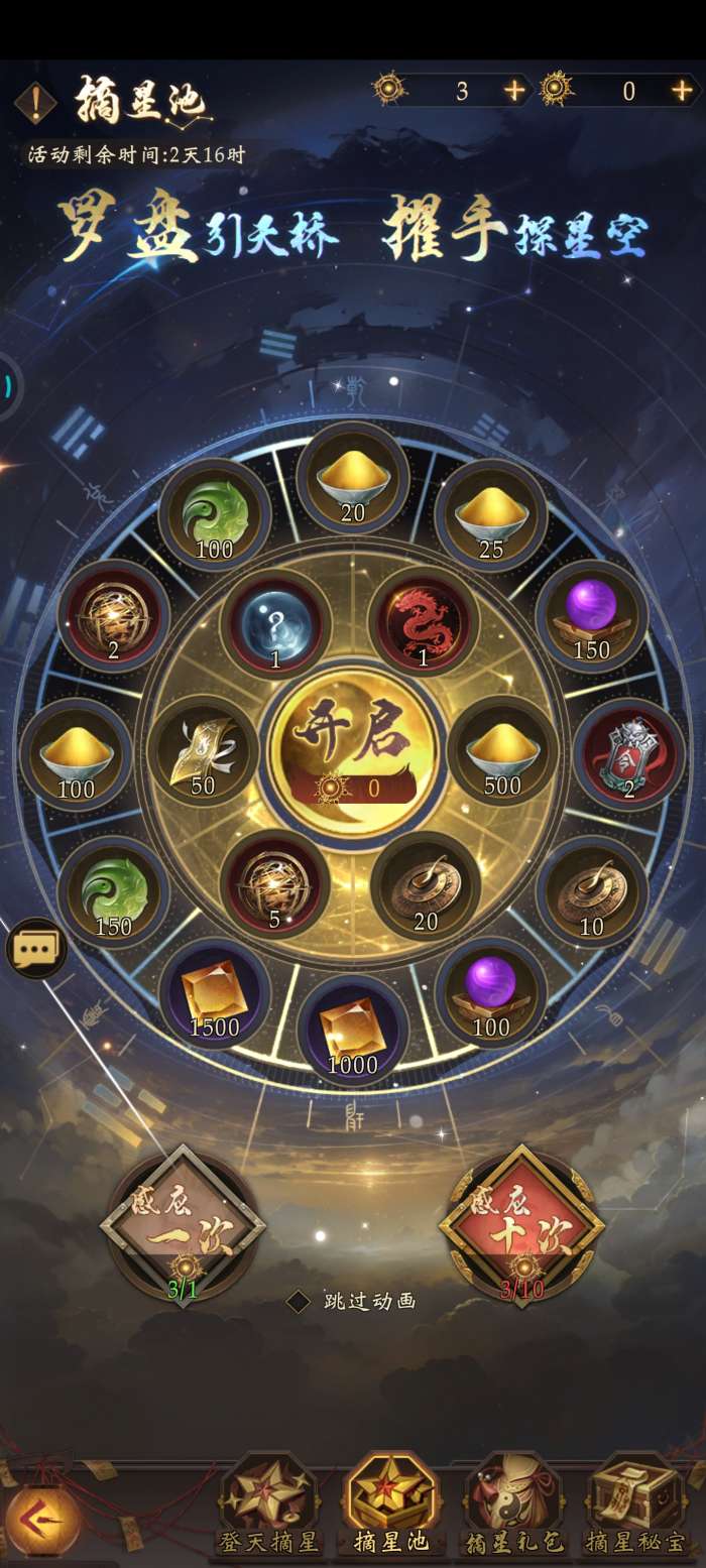 但是陨星砂会过期,大概10抽出20-200个左右,陨星砂进度3000会得一个橙色当期法阵,或者5000,当期红色法阵。如果璇玑盘充足,那么只消耗璇玑盘,就能得到当期法阵,建议就不要点内圈的窥天鉴了。同理,建议留着抽后期的红色法阵。