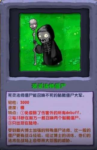 软件提交 专题合集 热门手游《植物大战僵尸杂交版》游戏中有许多的僵尸,死灵法师僵尸是一名只会出现在陆地上的僵尸,能召唤不死的骷髅僵尸大军发起进攻,不少玩家还不知道它的韧性、速度和特点是什么,下面就来一起看看吧。