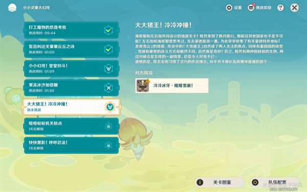 这一关难度不高,组合出感电、绽放的队伍可以很轻松的通关。