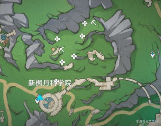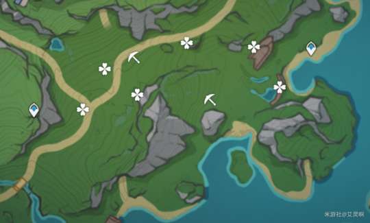 图中四叶草标注点位为挖掘能量处,锄头标注点位为宝箱所在地,完成宝箱所在地的挑战即可开启宝箱