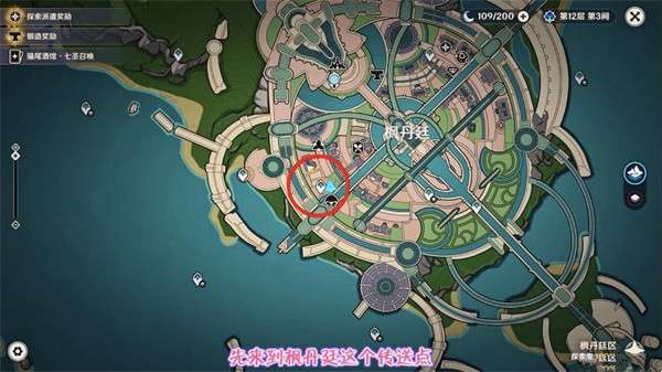 1、首先打开地图前往枫丹廷传送点。