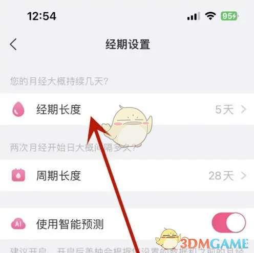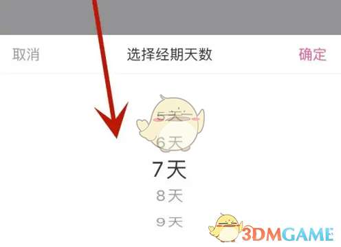 3、在界面设置天数后保存,即可实现在美柚App中设置自己的经期天数了。