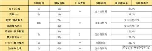 四、专精收益:二级技能“安眠”在专业级别三时达到了质变,增加了一秒的沉睡时间,大大提高了它的覆盖率。从技能等级七到专业级别三,DPS提升分别为13.3%、26.7%和35%,提升非常明显。建议技能等级训练为七级和专业级别三(适用于睡眠体系)。