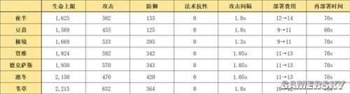 在面板数据分析中,我们主要以同一职业的豆苗为对比对象,并额外加入了其他五位五星先锋:贾维、极境、苇草、德克萨斯、凛冬(苏醒和专精天赋不计算),以精二满级且没有潜能的状态进行数据计算。