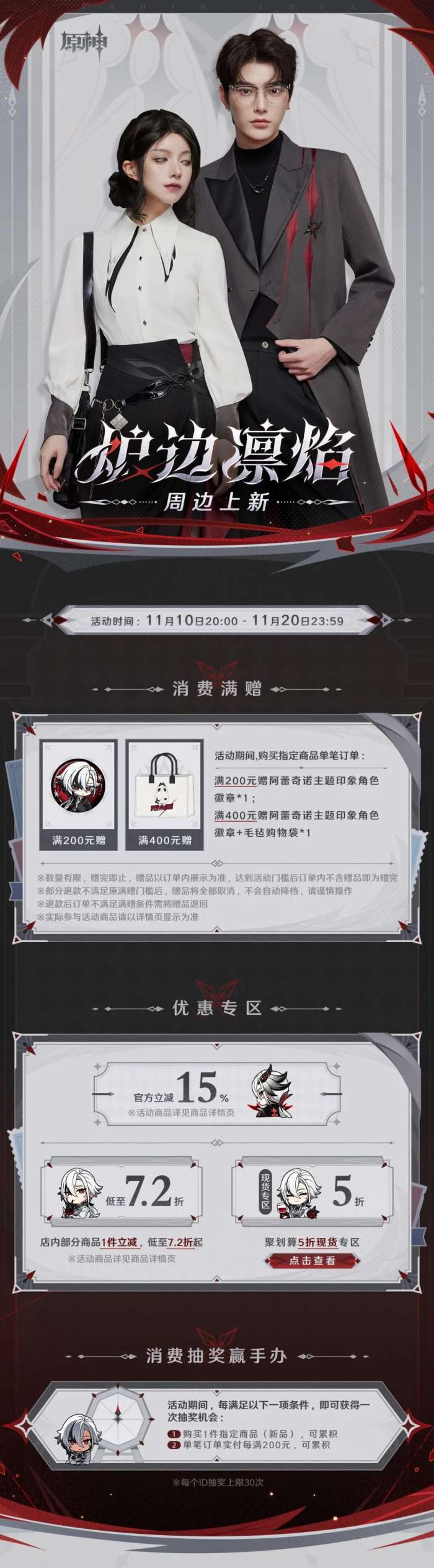 软件提交 专题合集 热门手游亲爱的旅行者,原神官方周边店铺即将于11月10日20:00开启「炉边凛焰」周边上新活动!