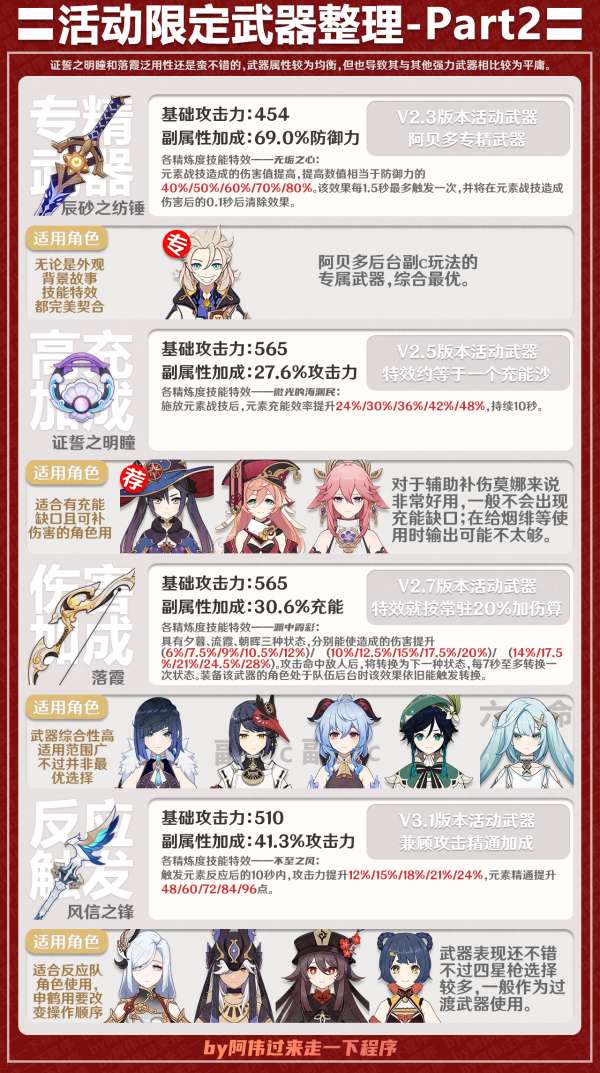 除阿贝多专武外,这三把武器都是很中规中矩的,其中法器非常适合莫娜,可完美解决充能无法循环的问题。