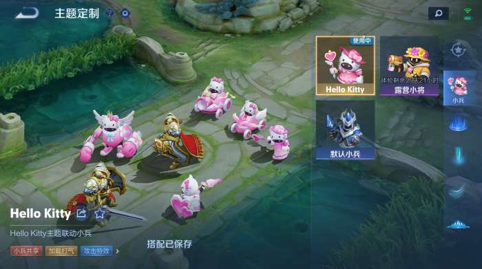 软件提交 专题合集 热门手游王者荣耀HelloKitty小兵皮肤多少钱?这次王者荣耀与HelloKitty的联动相信有不少的小伙伴都很期待,而此次的联动中还有传说品质的联动小兵,那这次的联动小兵皮肤需要多少钱呢,小编这就为大家带来了价格一览,还不清楚的小伙伴快来看看吧。