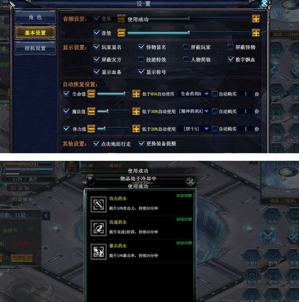 首先需要注意的点是虚幻空间内的怪物伤害很高,因此需要我们把设置里面的自动回复设置成生命值低于85%时就自动回血,确保我们能扛得住怪物的伤害。同时可以吃上攻击、攻速、暴击药水,增加自身的输出能力,如果在4分钟的时候发现已经打掉怪物20%血量以上,那么肯定是能稳定通过这一层的啊,可通过这一点判断自身实力避免浪费时间。