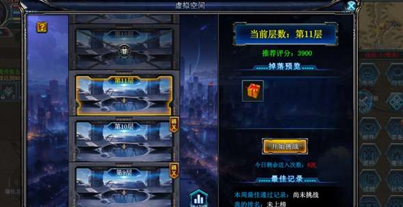 虚拟空间每周末晚上10点后不可进入,进行排行榜奖励结算。每周可挑战层数为上周最高可挑战层数减5。