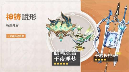 鹤鸣余音、千夜浮梦、千岩长枪、祭礼剑、祭礼大剑、祭礼残章、祭礼弓。好好好,什么神器大合集,上至5星、下至4星,全都是玩家口中的强力武器,这样玩是吧!