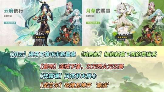 闲云、纳西妲、嘉明、珐露珊、诺艾尔。这5位,目前除了诺艾尔不少老玩家满命,其余基本都处于未持有或未满命状态,有极大提升空间,面向人群还是挺丰富的~