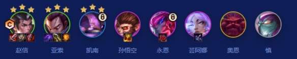 赵信、亚索、凯南、猴子、永恩、芸阿娜、奥恩、慎