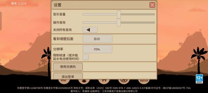 11、设置:可以调整游戏帧数、遮挡显示、音量、退出游戏按钮。