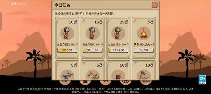 6、世界任务:也就是主线任务,完成任务后可以解锁新的时代。石器时代>青铜器时代>铁器时代。