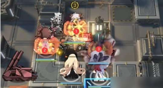 地面的阵容为桃金娘产费、星熊、塞雷亚,其中塞雷亚是用来阻挡敌人的角色。