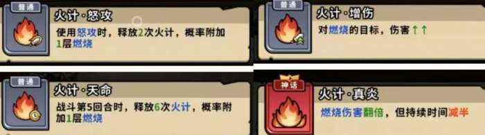 火攻计策的重心在于群攻技能,它可以通过叠加杂兵数量,来增强dot伤害,在前期,可以用于范围压血线,在后期,可以用于消耗,属于T1级别的一个选项。