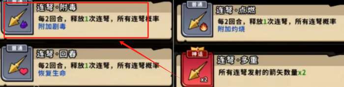 但由于游戏rougelike性质,不代表每一次战斗结束期间,玩家都可以收集出,雷电相关的流派属性,固然下位的选择属性,可以使用火毒消耗流派,其组合逻辑是通过火攻叠加灼伤,并且使用连弩附加毒属性伤害。