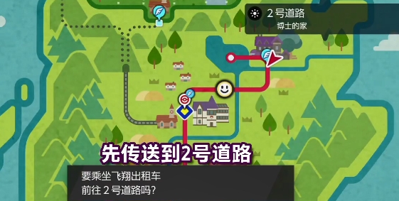 1、玩家打开地图,利用【飞翔出租车】前往2号道路的博士家;