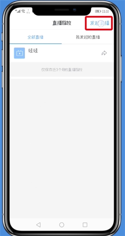 6、再点击右上角的“发起直播”。