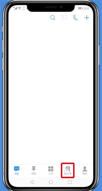 1、登录钉钉,点击“通讯录”,如图所示。