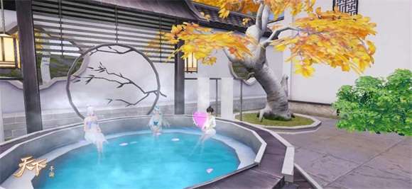 夏日炎热,《天下》手游的家园也是避暑好去处!玩家“一只懵”就分享了和好友们在家园中玩耍的日常。比如,摆几张椅子,像模像样地围绕“晚饭吃什么”开个座谈会;或者躺在床上谈天说地,聊聊最近磕的CP有多香;又或是在客厅散心,到书房画画,跑到院子里泡上一池热腾腾的温泉!身后是金黄的丹枫,身前是可爱的伙伴。谁说我在家呆不住了?这家园我还能再“宅”一百年!
