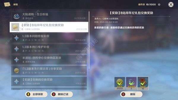 使用这一礼包码可以兑换得到2个脆弱树脂、10本冒险家的经验和23333摩拉。