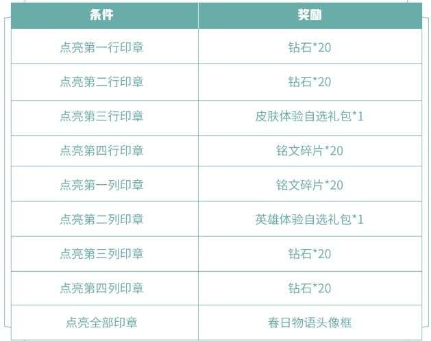 ①完成风景旧曾谙系列任务,可领取印章,印章可用于点亮打卡册,同一行/列印章都点亮可获得对应奖励,点亮全部印章可获得全新头像框-春日物语;