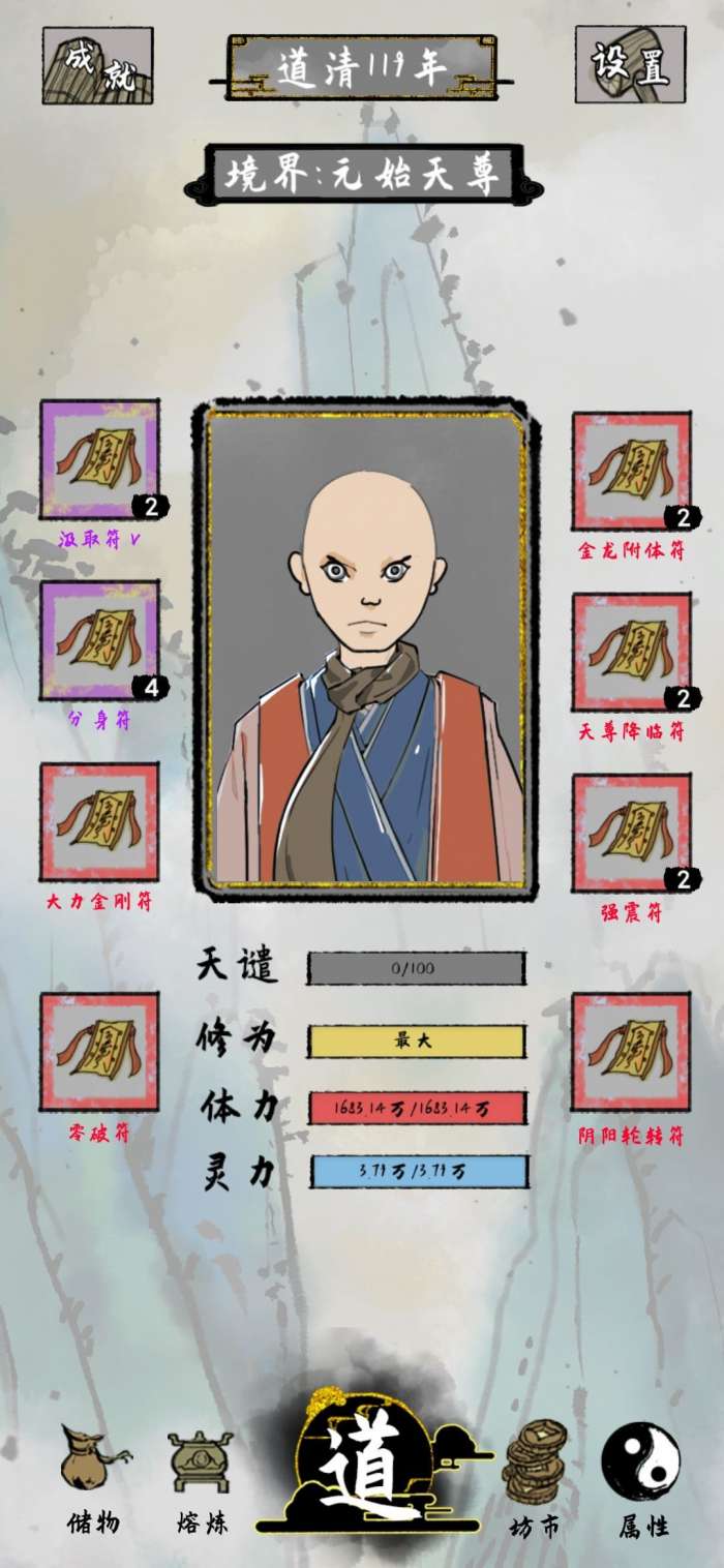 捏脸一个光头(可做光头专属任务),天赋选择我推荐寿星或木头人+主人公,如果凑不齐的话可以选个巨灵神或者丹体、丹炉,丹炉蓝色品质的天赋,懂得都懂。灵根能争取到单灵根最好,争取不到至少也得三灵根,要的就是速度。进游戏之后就狂点修炼,得到的装备全都卖掉,没用的丹药全卖(前期留血药防止脸黑)只留符箓。升级主点加攻击、暴击爆伤(优先叠满暴击,爆伤可以慢慢叠)、寿命、修炼速度的天赋,如果没得选可以选择丹药类。最重要的天赋是符箓道神,化霸王神拳的缺陷为优势,符篆主要选择吸血,分身,攻防,其次再选择暴击爆伤。