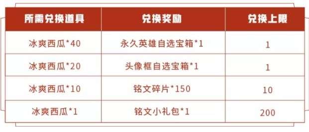 浪漫初夏来临,全新兑换商店上线!玩家可以在5月7日-6月7日收集冰爽西瓜,即可兑换永久英雄自选宝箱等奖励!