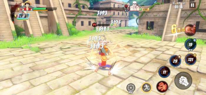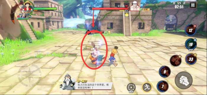 鳄鱼一整套打完,我们再替换路飞登场。路飞的技能连招推荐“普攻+橡皮·抓+普攻+橡皮·机关枪+究极奥义”,这一整套是最核心的,其中较为基础点的就是“橡皮·抓+普通奥义”。前者可以用来消耗,后者用于破盾为主。