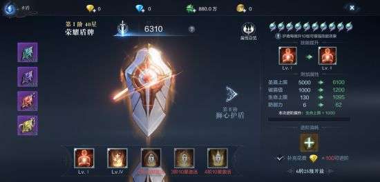 神圣护盾拥有独自的技能系统,恢复、伤害、控制,不同技能的圣盾可以应对不同的对战场景。玩家可以通过活动获取锻魂道具,在圣盾界面使用直接增加角色属性。也可以通过升星升阶在来强化圣盾的技能效果。值得一提的是圣盾有华丽的粒子特效,可以让你的角色更加炫酷瞩目!勇士们赶快收集材料提升圣盾,打造自己的最强角色吧!