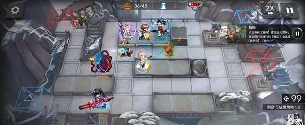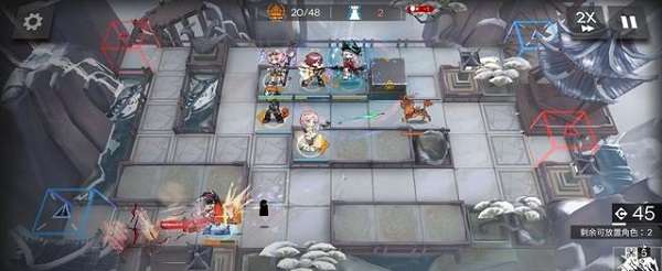 3、开局先部署能天使冲右侧攻击,然后部署蓝毒冲右侧攻击,这两个是关键点,蓝毒不可替代,毕竟要的就是这个毒的效果。