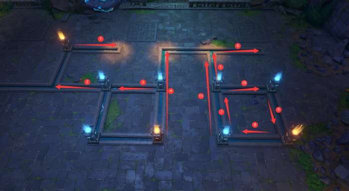 需要玩家将橙色的机关推动至地图“橙色聚光灯”瞄准的地方。