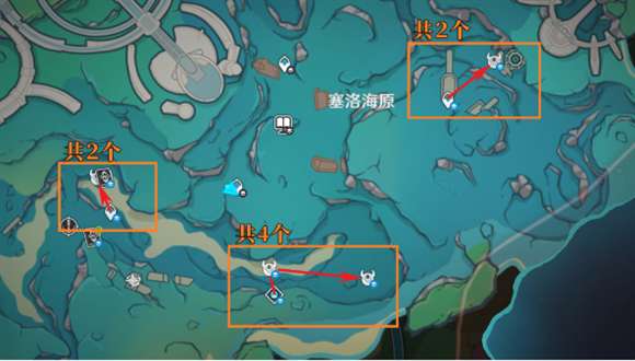塞洛海原存在7个机关点,建议玩家从东面开始讨伐。