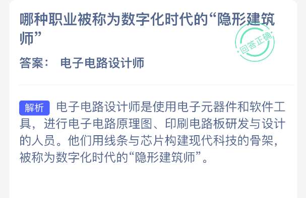 软件提交 专题合集 热门手游哪种职业被称为数字化时代的“隐形建筑师”?【蚂蚁新村每日一题】2025年12月9日题目已发布!坚持答题,积累木兰币,即可加速小镇建设。答对本题,立即可享“产速+3/时”的加速奖励!今天正确答案是【电子电路设计师】。电子电路设计师被称为数字化时代的“隐形建筑师”.