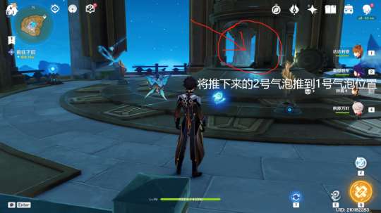 最后,把被推下去的气泡推到这一层的中间。当两个气泡在1号气泡的位置融合成一个大气泡时,打一下大气泡,宝箱就会被解锁。
