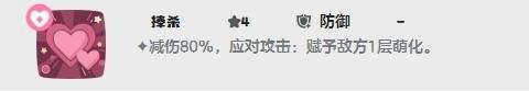 1、捧杀:减伤80%,应对攻击:赋予敌方1层萌化。