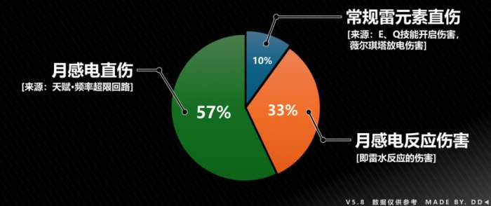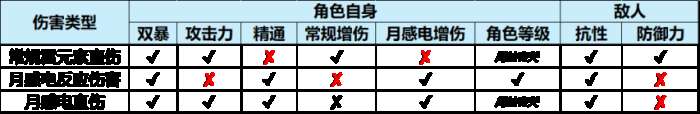 伊涅芙的伤害构成及个伤害占比如上图,约90%伤害均为月感电直伤和月感电反应伤害,因此,在选择武器圣遗物时要优先考虑如何提升月感电直伤和月感电反应伤害,那如何提升这两种伤害呢?如下图↓