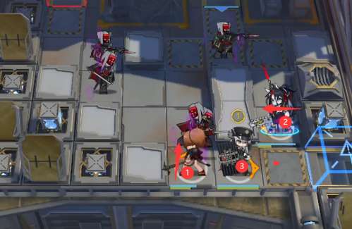 依据下图的顺序,先部署先锋干员推王,然后再部署近卫干员煌,最后再部署重装干员塞雷娅。