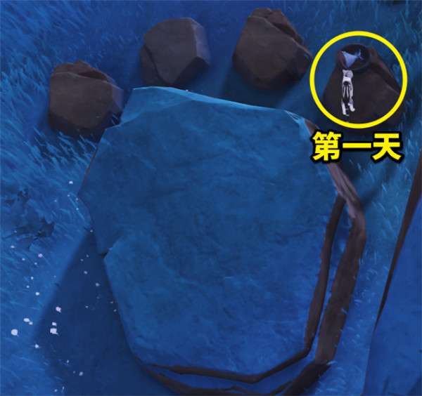 1、第一步我们先来到如图所示的位置,接着就会看到旁边有一个猫 爪石头。