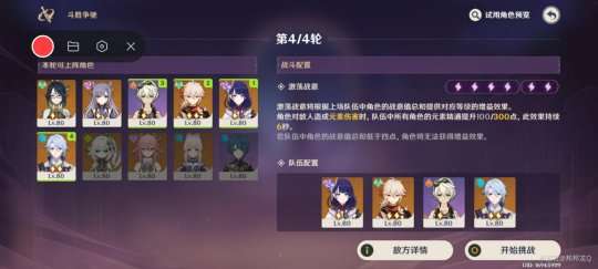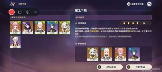 凑了个远古队感电队哈哈哈,主要还是把比较强的拿上(要玩草行久的可以把久岐忍带上后面有草神),神子注意在开始挑战前就把三个杀生樱放好,雷神也提前E,不熟悉神子的记得及时补杀生樱和Q之后立马接三个杀生樱就行了