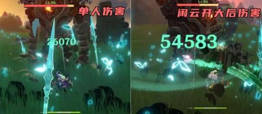 闲云的Q经过实测,在单人的情况下,对魈的提升是非常大的,如下图所示:
