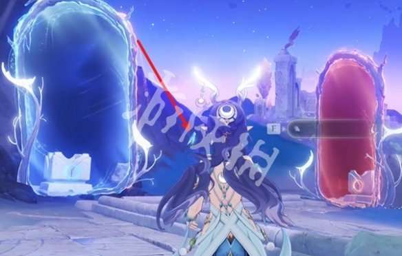3、来到红色镜子里面,等待雕像上的光点变红,然后将其吸过来。
