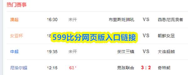 软件提交 专题合集 热门手游599比分是一款提供足球赛事资讯的工具,支持实时比分查看和论坛讨论。网页版入口链接为https://www.599.com/,进入后可浏览足球内容,登录后可保存查看记录,方便快速访问。