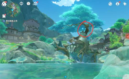 14:先开三个仙灵宝箱,树上的仙灵飞过去,之后激活金鲤传送门,一路向上。三个仙灵位置如下