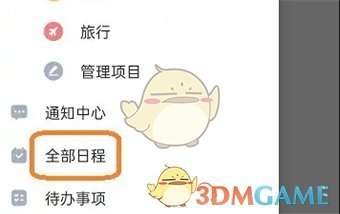 2、切换到菜单页面以后,找到并点击【全部日程】。
