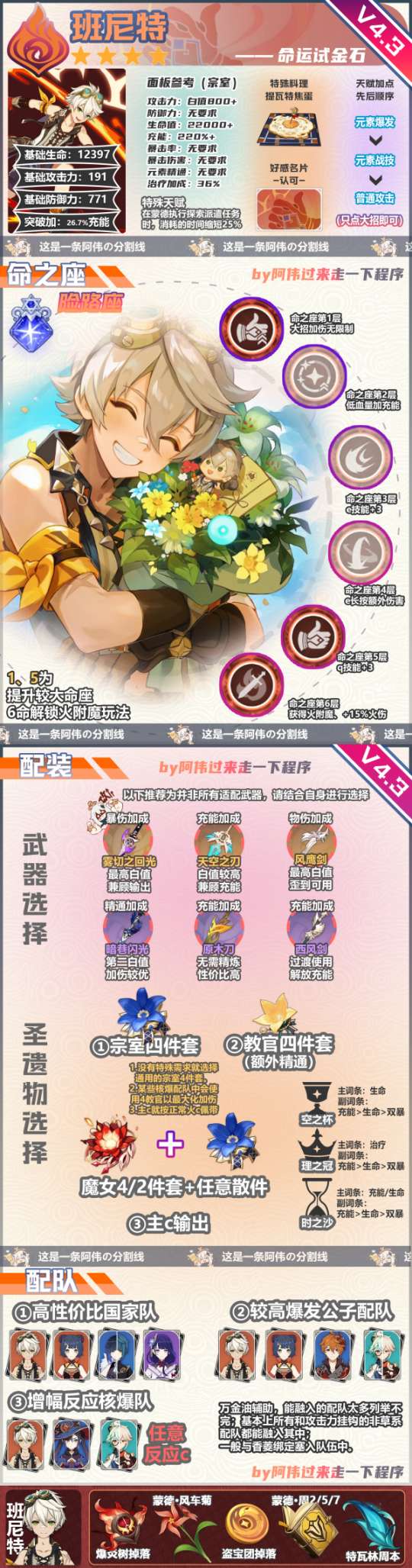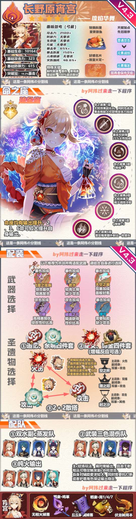 要组建宵宫武装混伤队伍,需要确保几个后排副本领主的大招可以不间断地释放,这对副本领主的能量充能要求很高。