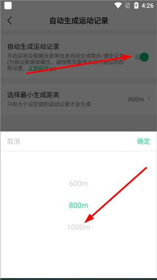 3、开启自动生成运动记录,选择最小生成距离即可;