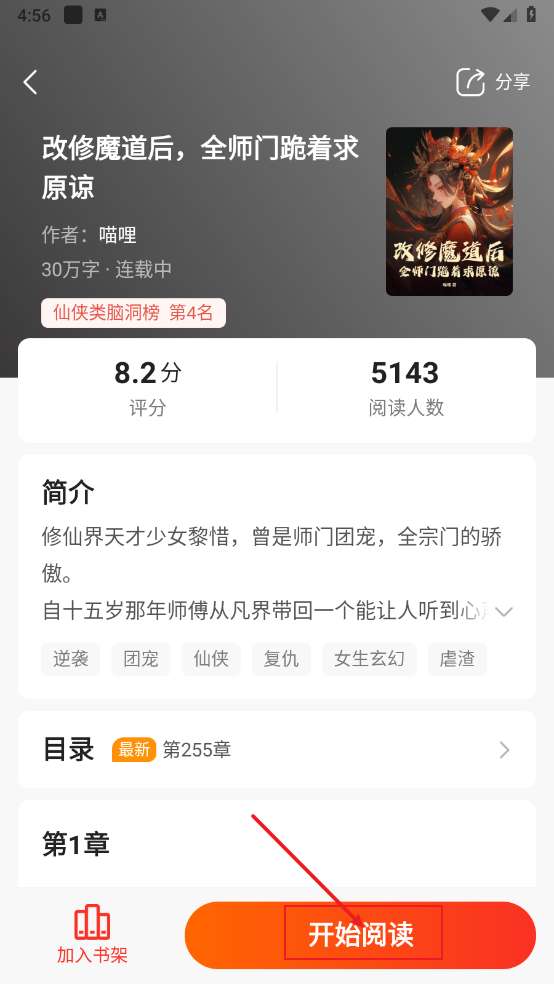 2、一键打开进入详情页,然后点击"开始阅读"。