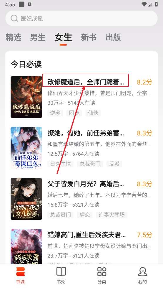 1、在本站下载安装软件后,在书城里面选择喜欢的小说进入。